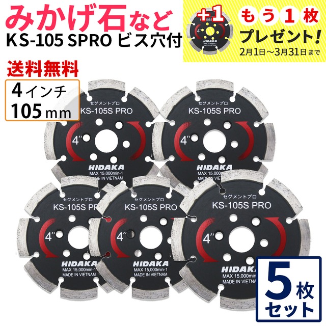 【5枚セット】【送料無料】KS-105Sプロ (ビス穴付き) KSセグメントプロ 4インチ 105mm みかげ石などの切断用 ダイヤセグメント ダイヤモンドカッター 刃 ビス3個付属 (ks-105spro-b) KS-105SPRO-B-05