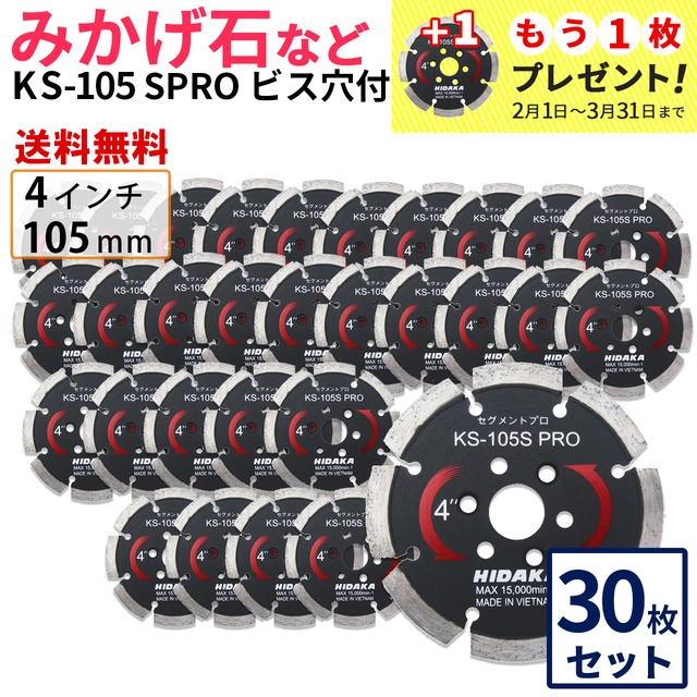 【30枚セット】【送料無料】KS-105Sプロ (ビス穴付き) KSセグメントプロ 4インチ 105mm みかげ石などの切断用 ダイヤセグメント ダイヤモンドカッター 刃 ビス3個付属 (ks-105spro-b) KS-105SPRO-B-30