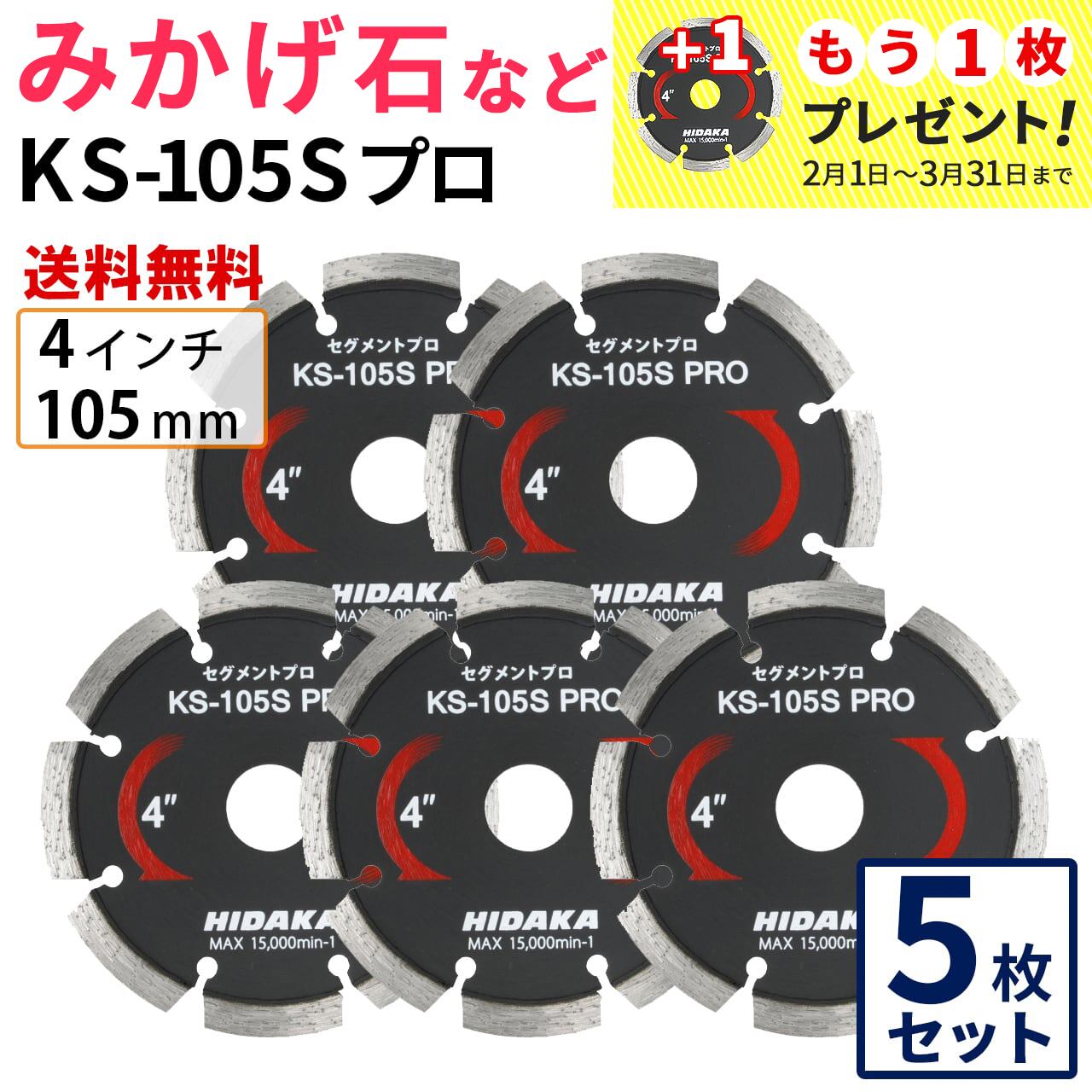 【5枚セット】【送料無料】KS-105Sプロ KSセグメントプロ 4インチ 105mm みかげ石などの切断用 ダイヤセグメント ダイヤモンドカッター 刃 (ks-105spro-05)