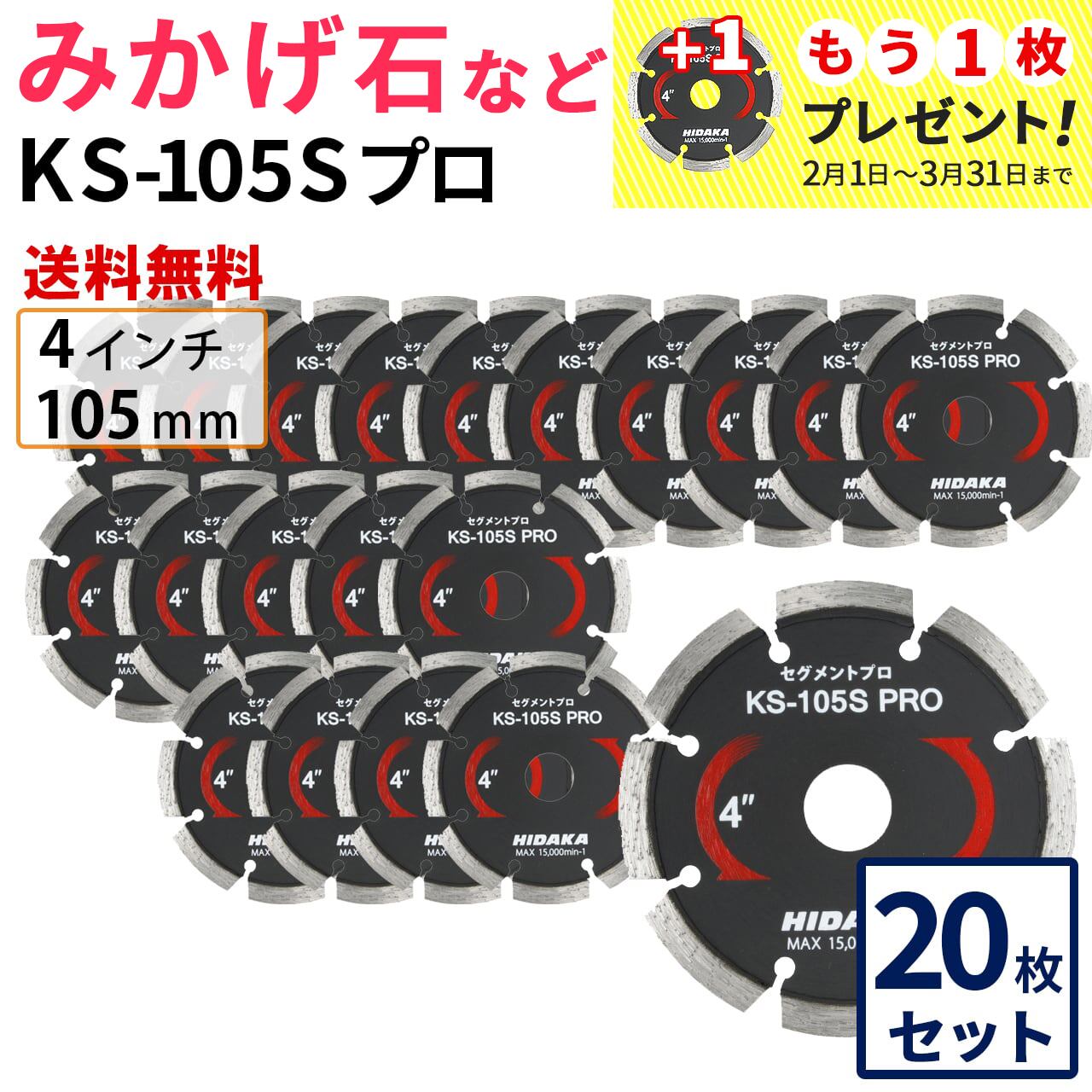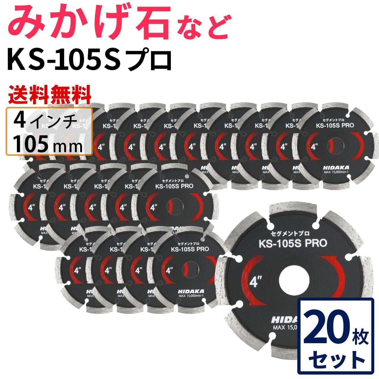 【20枚セット】【送料無料】KS-105Sプロ KSセグメントプロ 4インチ 105mm みかげ石などの切断用 ダイヤセグメント ダイヤモンドカッター 刃 (ks-105spro-20)