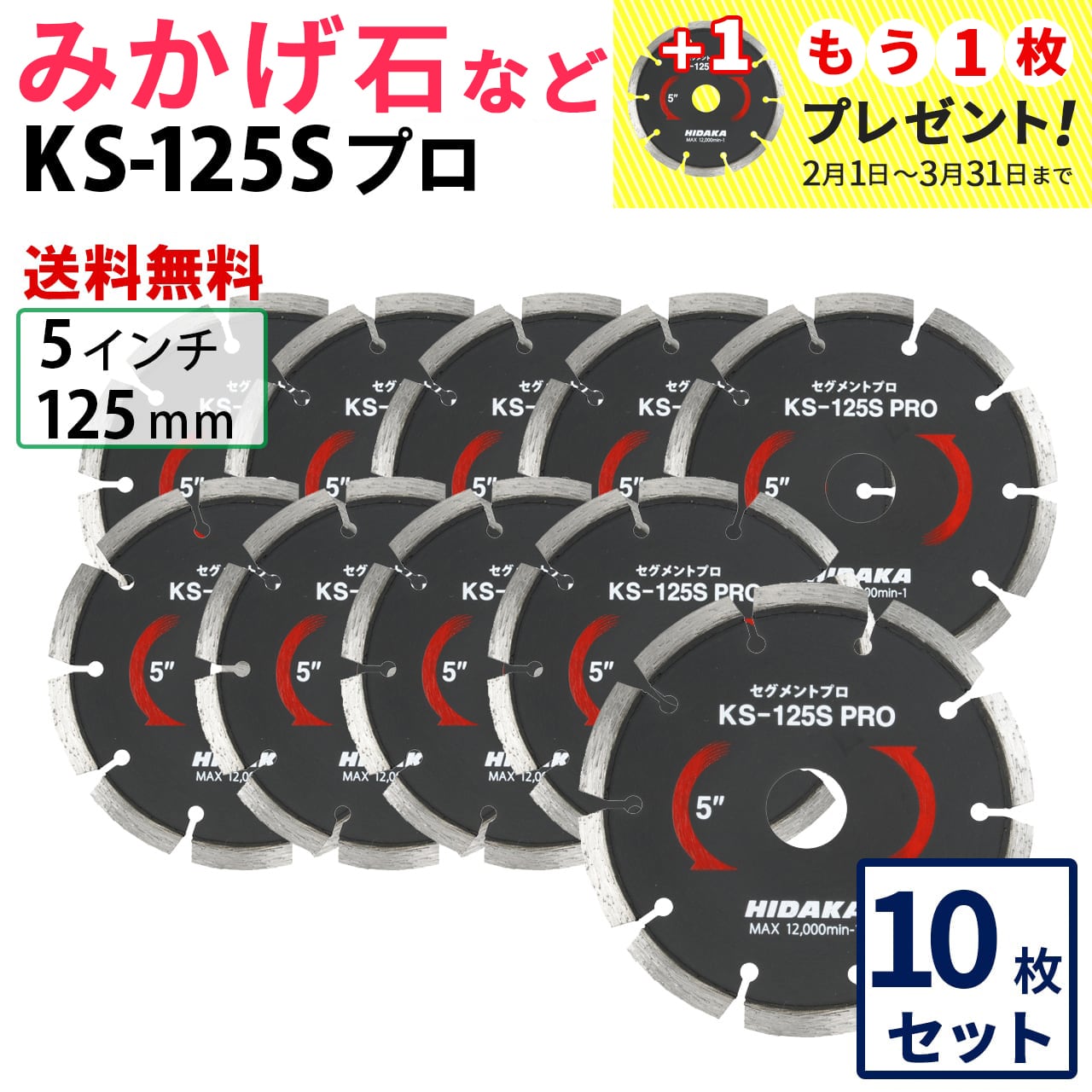 【10枚セット】【送料無料】KS-125Sプロ KSセグメントプロ 5インチ 125mm みかげ石などの切断用 ダイヤセグメント ダイヤモンドカッター 刃(ks-125spro-10)