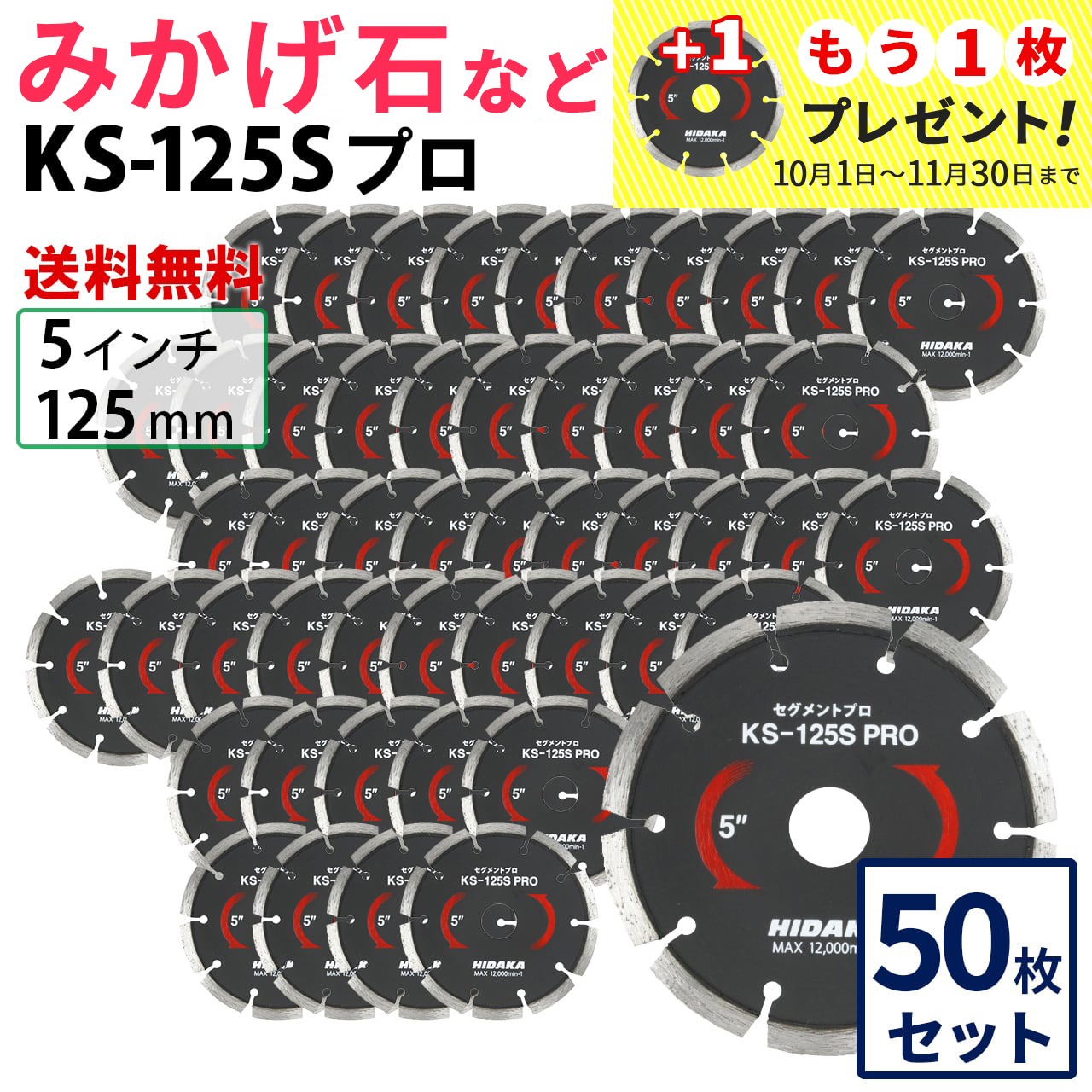 【50枚セット】【送料無料】KS-125Sプロ KSセグメントプロ 5インチ 125mm みかげ石などの切断用 ダイヤセグメント ダイヤモンドカッター 刃(ks-125spro-50)