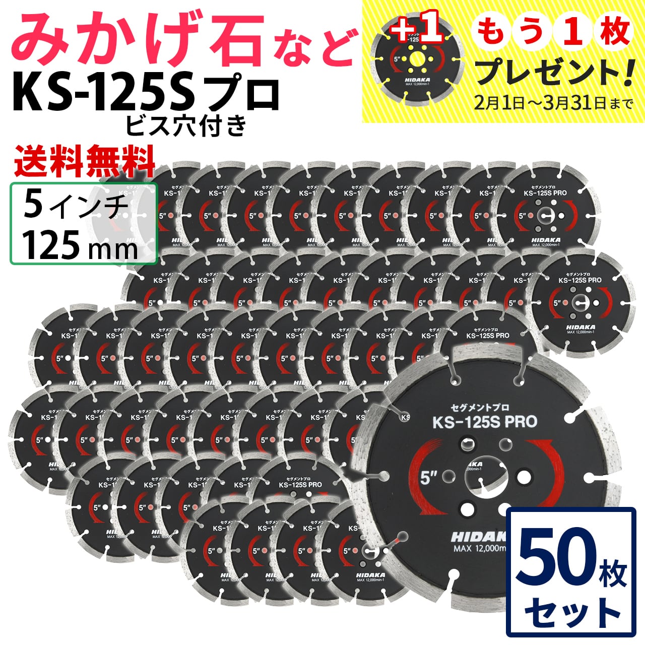 【50枚セット】【送料無料】KS-125Sプロ (ビス穴付き) KSセグメントプロ 5インチ 125mm みかげ石などの切断用 ダイヤセグメント ダイヤモンドカッター 刃 ビス3個付属 (ks-125spro-b) KS-125SPRO-B-50