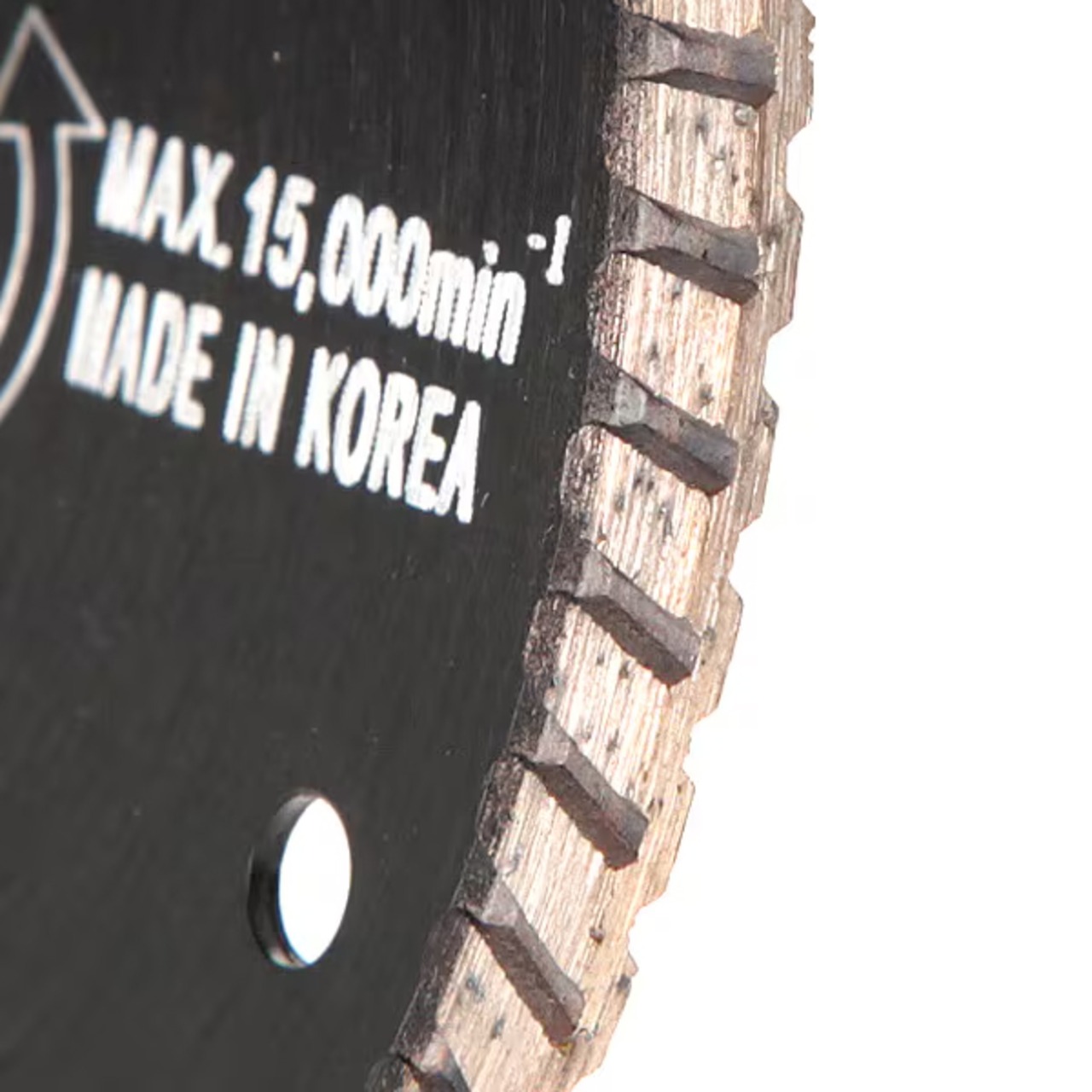 刃先に細かくスジ(スリット)が入っています。この細かいスジが、切り粉を逃がし、ダイヤを冷却する効果があります。切れ味を落とさずに、切断面がきれいに切れ、仕上がりを重視する現場に適しています。