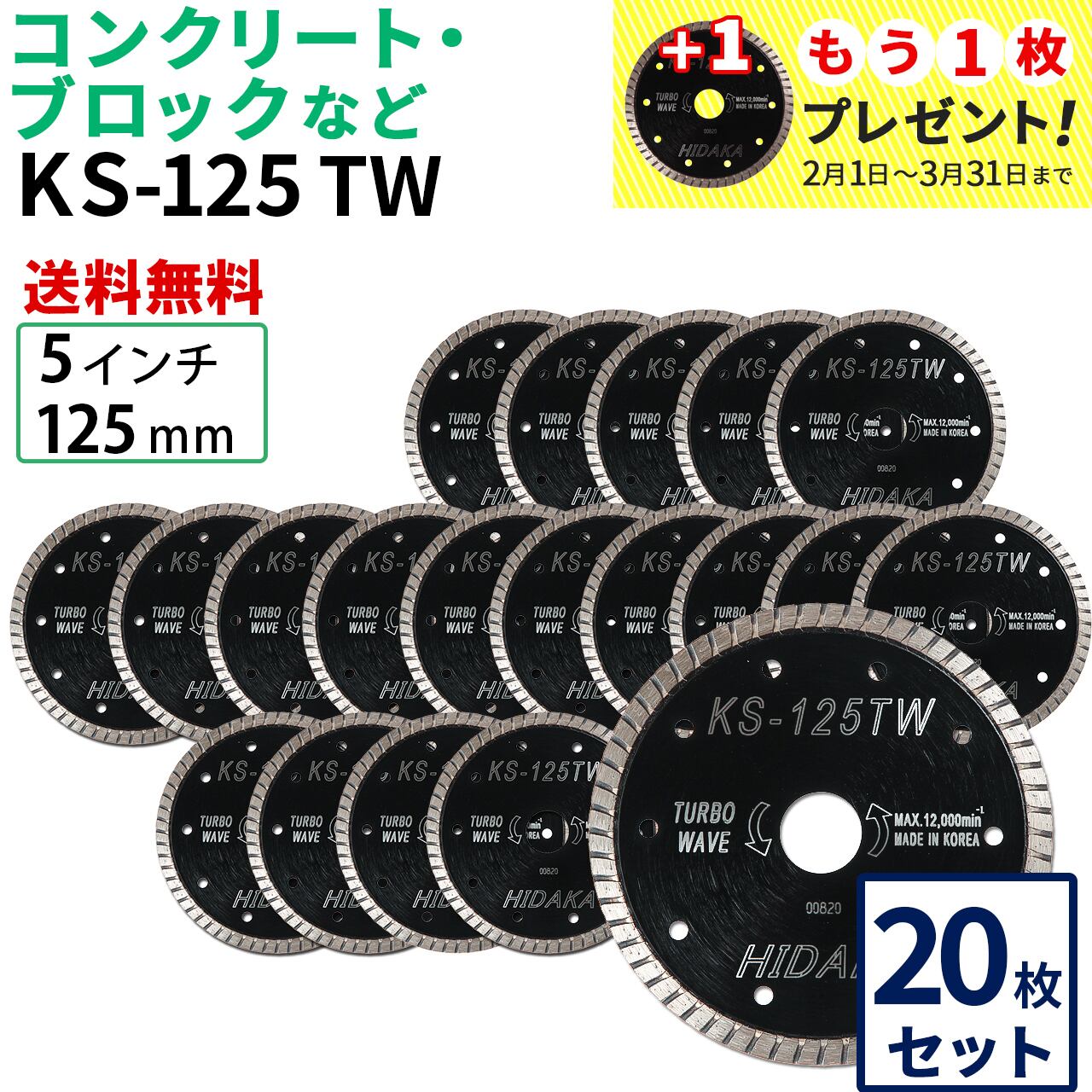【20枚セット】【送料無料】KS-125TW KSターボウェーブ 5インチ 125mm コンクリート・ブロックなどの切断用 ダイヤモンドカッター 刃(ks-125tw-20)