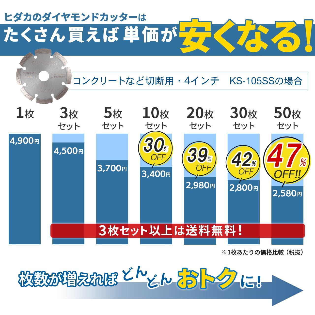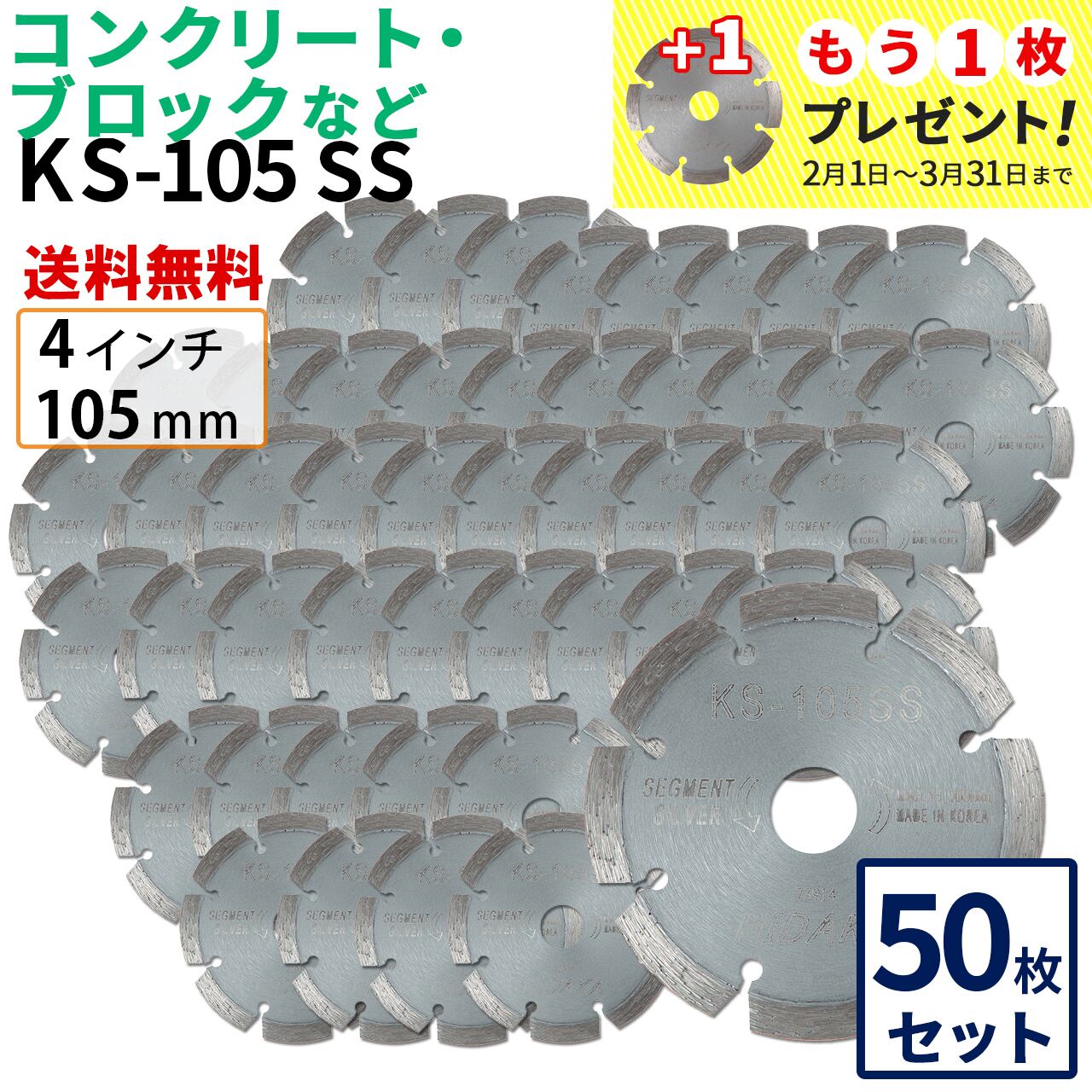 【50枚セット】【送料無料】KS-105SS KSセグメントシルバー 4インチ 105mm コンクリート・ブロックなどの切断用 ダイヤモンドカッター 刃(ks-105ss)-50