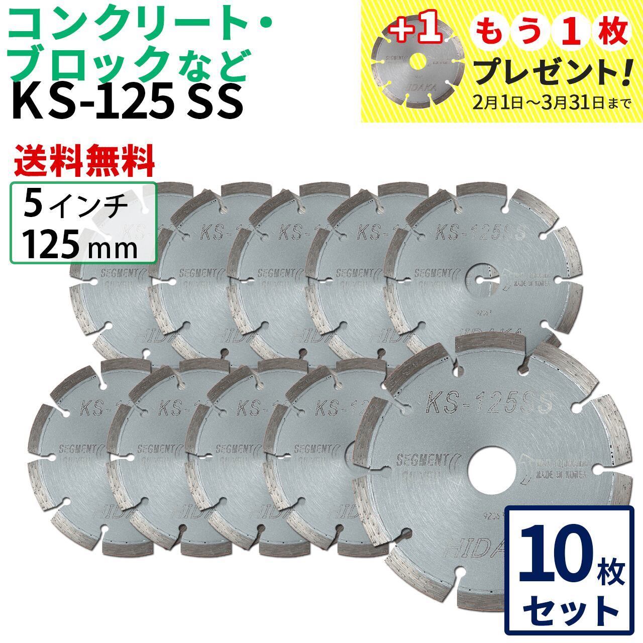 【10枚セット】【送料無料】KS-125SS KSセグメントシルバー 5インチ 125mm コンクリート・ブロックなどの切断用 ダイヤモンドカッター 刃(ks-125ss-10)
