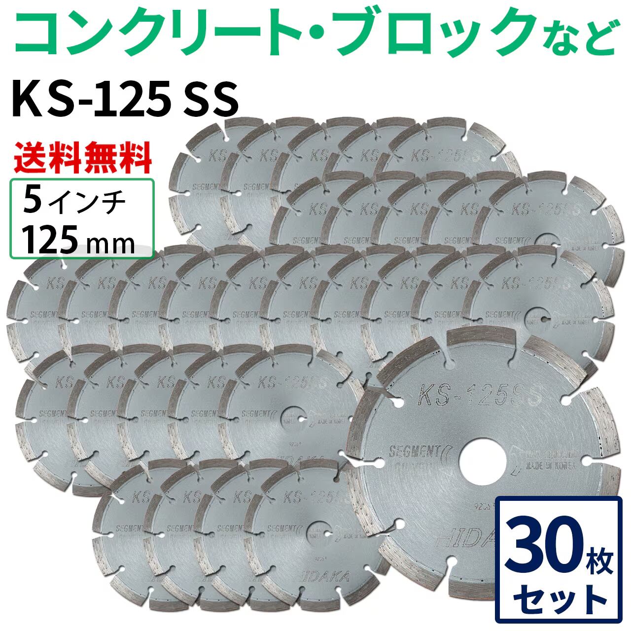 【30枚セット】【送料無料】KS-125SS KSセグメントシルバー 5インチ 125mm コンクリート・ブロックなどの切断用 ダイヤモンドカッター 刃(ks-125ss-30)