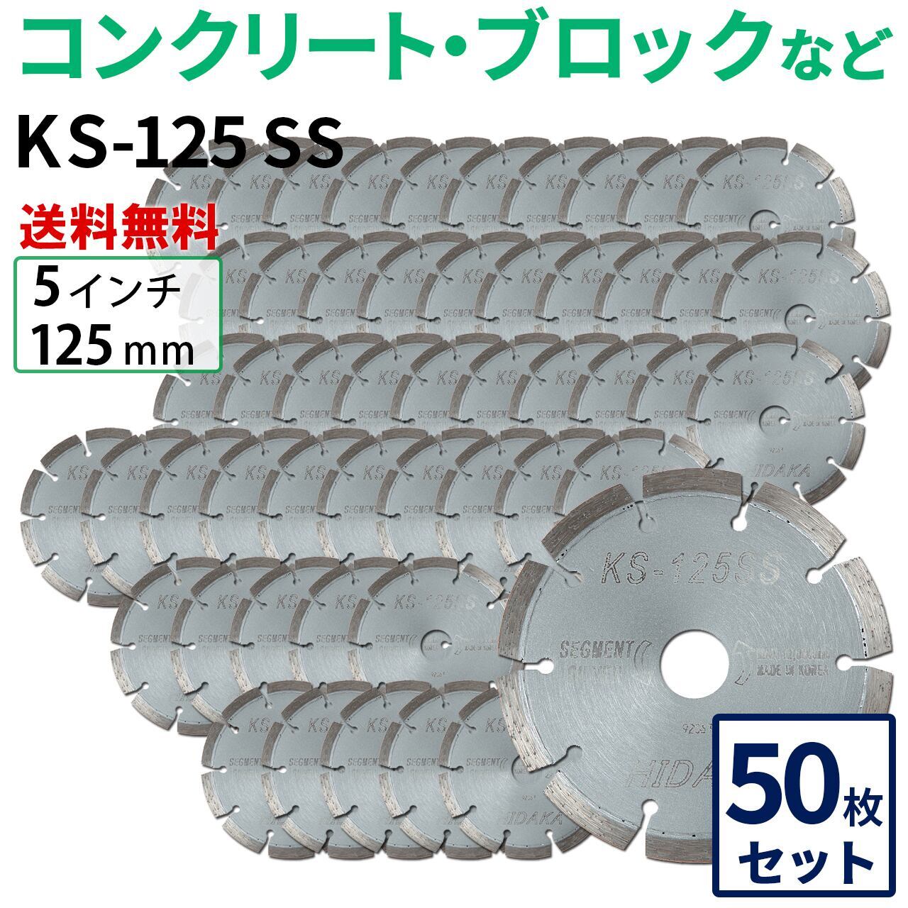 【50枚セット】【送料無料】KS-125SS KSセグメントシルバー 5インチ 125mm コンクリート・ブロックなどの切断用 ダイヤモンドカッター 刃(ks-125ss-50)
