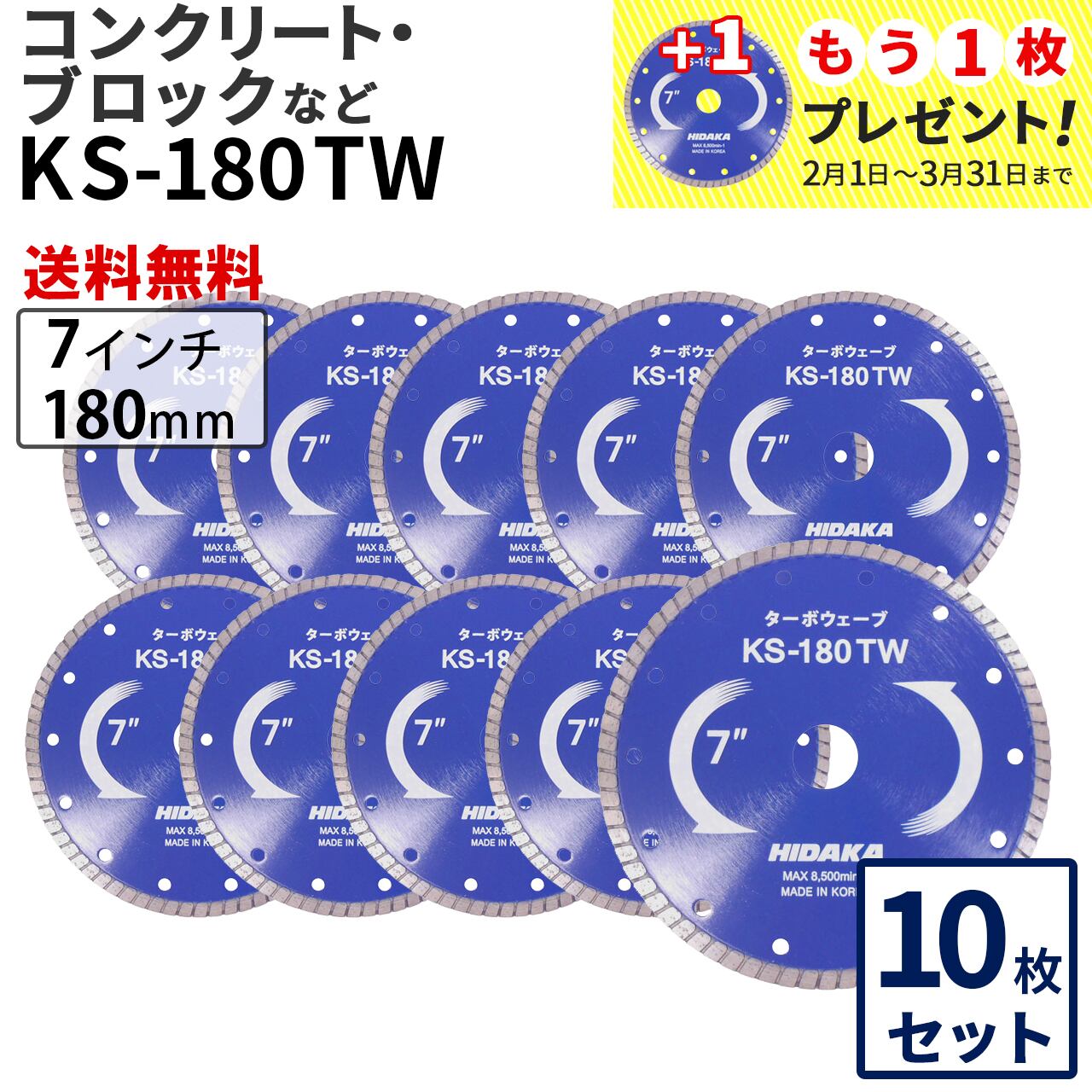 【10枚セット】【送料無料】KSターボウェーブ KS-180TW 7インチ コンクリート・ブロックなど (ks-180tw-10)