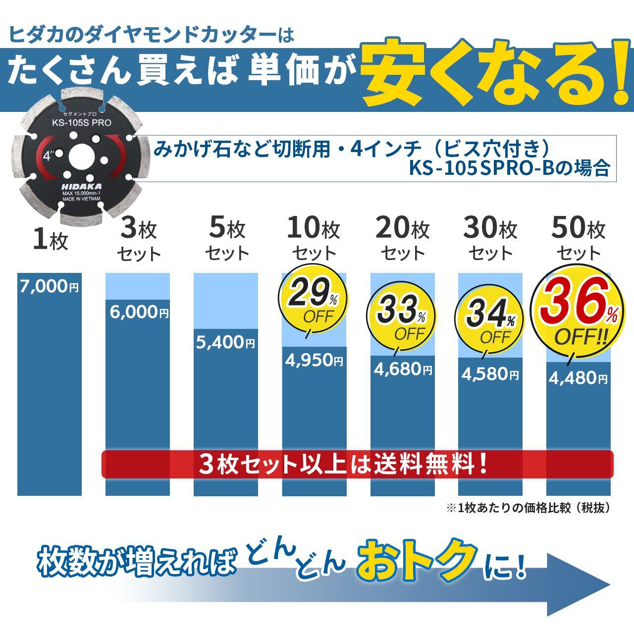 【30枚セット】【送料無料】KS-105Sプロ (ビス穴付き) KSセグメントプロ 4インチ 105mm みかげ石などの切断用 ダイヤセグメント ダイヤモンドカッター 刃 ビス3個付属 (ks-105spro-b) KS-105SPRO-B-30