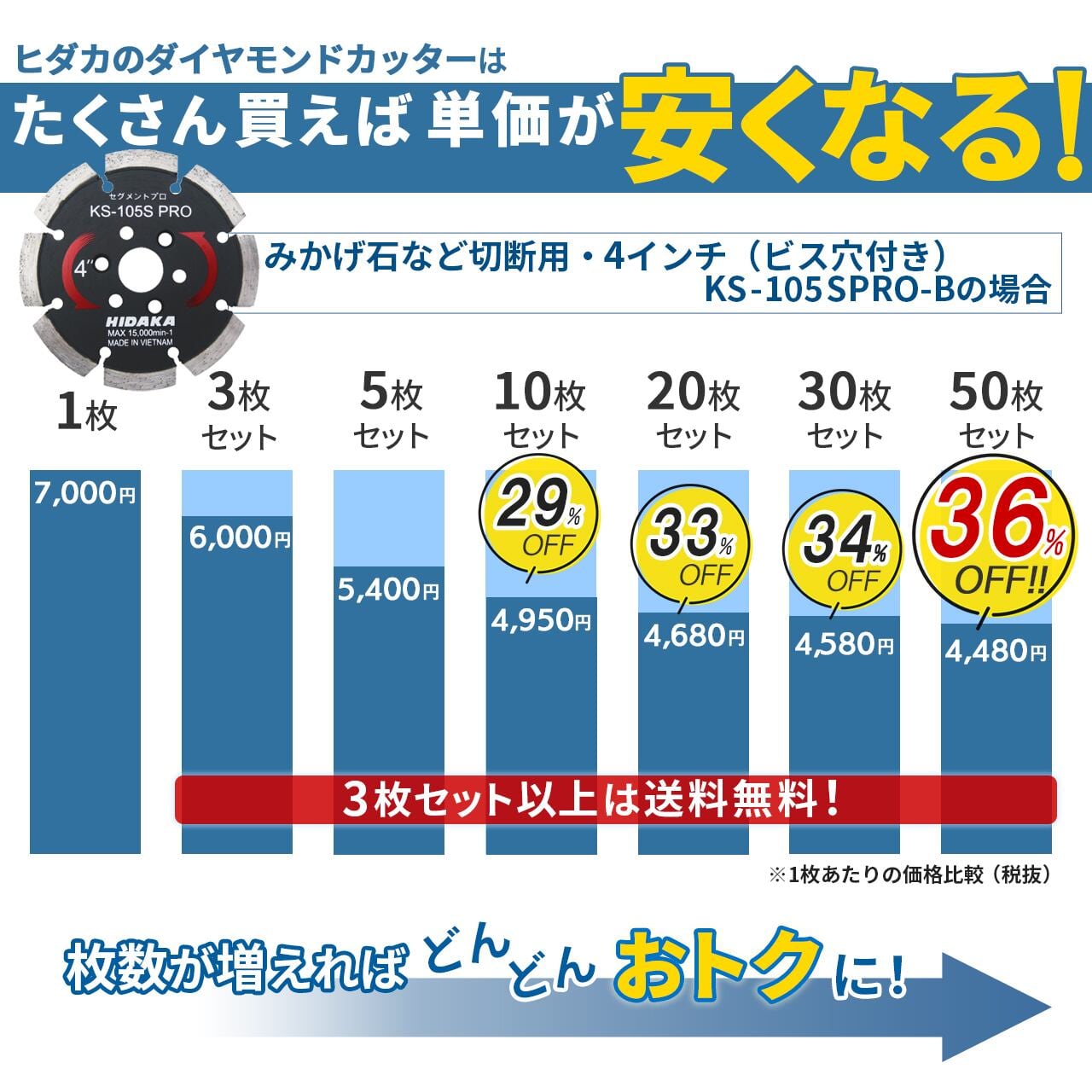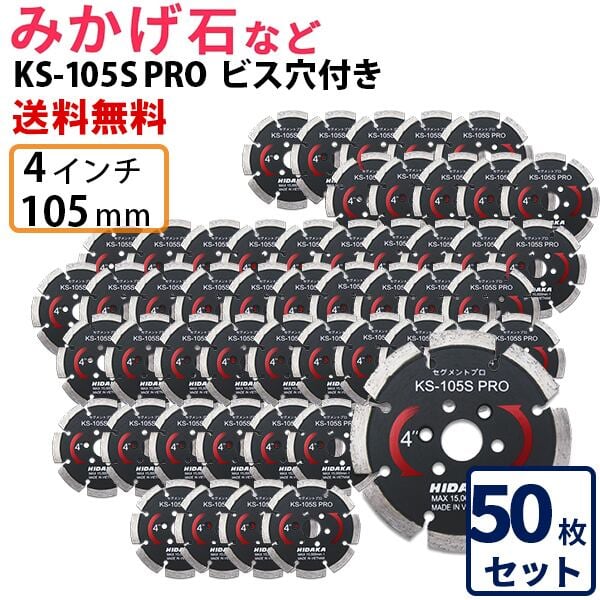 【50枚セット】【送料無料】KS-105Sプロ (ビス穴付き) KSセグメントプロ 4インチ 105mm みかげ石などの切断用 ダイヤセグメント ダイヤモンドカッター 刃 ビス3個付属 (ks-105spro-b) KS-105SPRO-B-50
