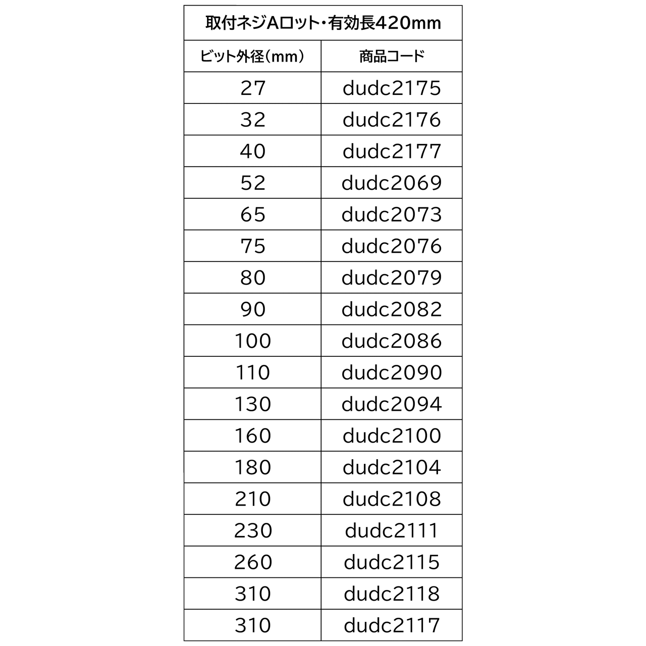 Aロットコアビット一覧はこちら